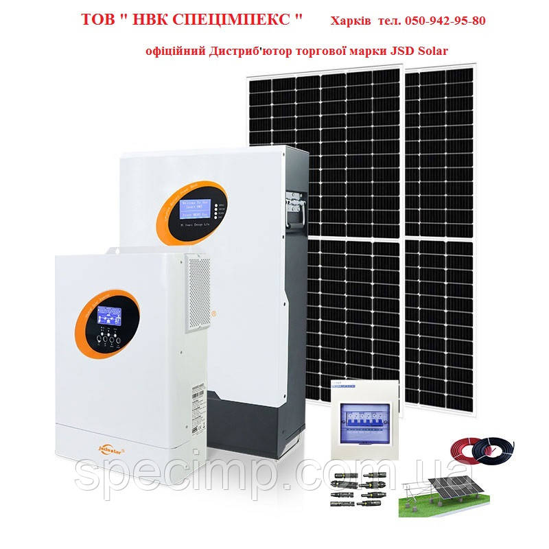 Обладнання, яке пропонується, а саме Інвертор, силова акумуляторна батарея мають потужність 5,5 кВт та 5,0 кВт відповідно, сонячні панелі – 550вт, а тому в залежності від паралельного чи послідовного підключення відповідної кількості цього обладнання будується «Сонячна станція відповідної замовленої потужності».